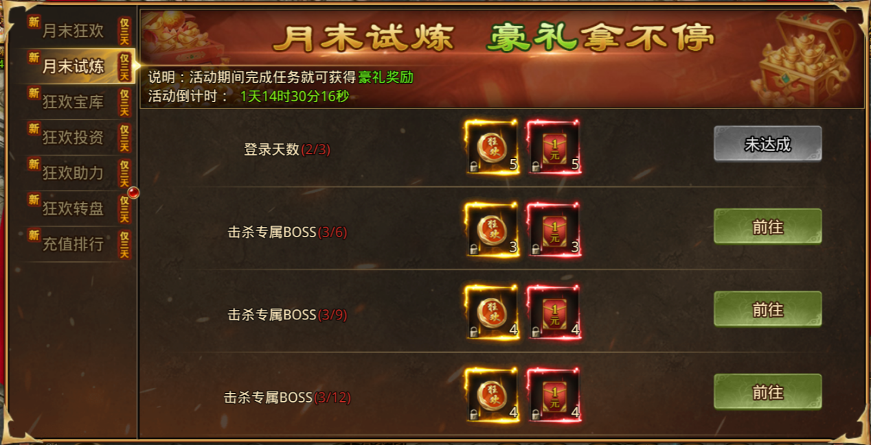 活动条件:开服第八天后的服务器