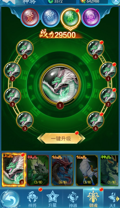 御魂系统我可以理解为神将的符文,佩戴上御魂会得到一些战力,每个御魂集齐一个套装,会大幅增加神将的属性。