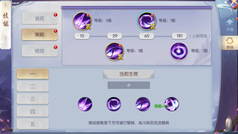 战龙在野,追魂夺命,献祭牺牲和正武天罡;其中献祭牺牲在快死亡时几秒内不会死亡,所以在打不过时有奇效,也可以实际情况换成雷霆之怒。