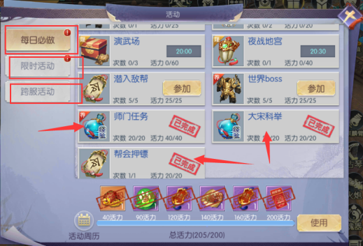 1、每日必做,有空闲的大侠们每日必做可以拿到不少资源哦,至少可以增加10-20几万元战力,及相当多的元宝、铜钱等 、如果忙了或忘记做任务也不用紧,第二天在福利还可以资源找回哦!