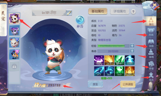 3 介绍一下 游戏的 灵宠 (宝宝) 游戏的灵宠增加的战力和属性相当大哦,