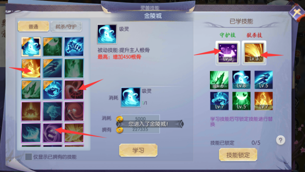 灵宠技能:最好为红、黄、紫 、蓝,依次先学习,还可以技能升级,满级为20级。技能学习和技能升级可以提升战斗力和属性哦!