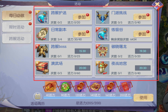 游戏的玩法相当丰富,每天都不同的玩法活动: