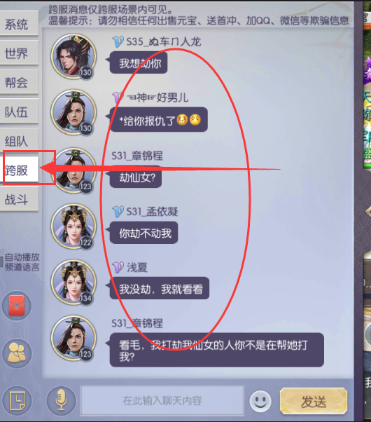 各位大侠们 游戏还可以在跨服天哦,你可以在跨服区域结交不同服的美女,帅哥哦!