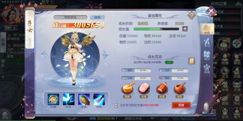 5 子女系统玩法 单身或结婚都可以生育宝宝、到中后期宝宝增加的战力达到3-5百万哦