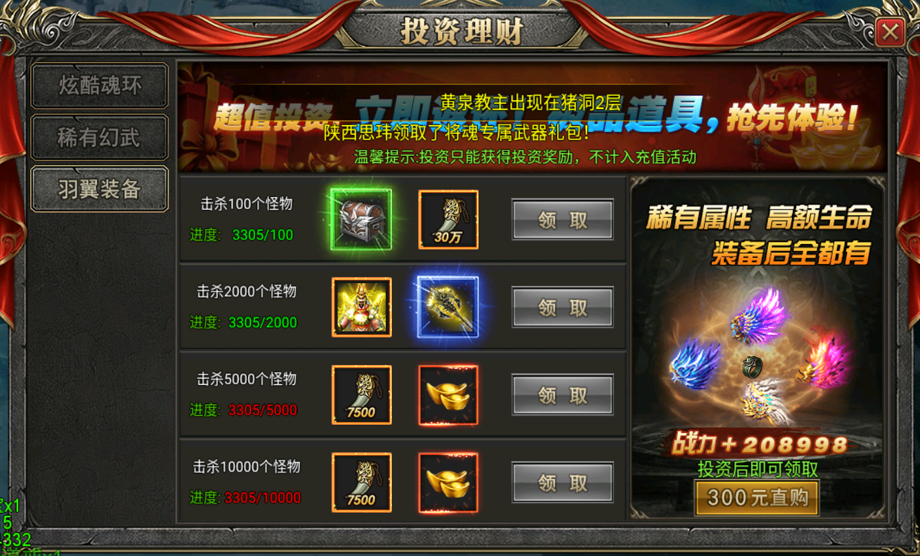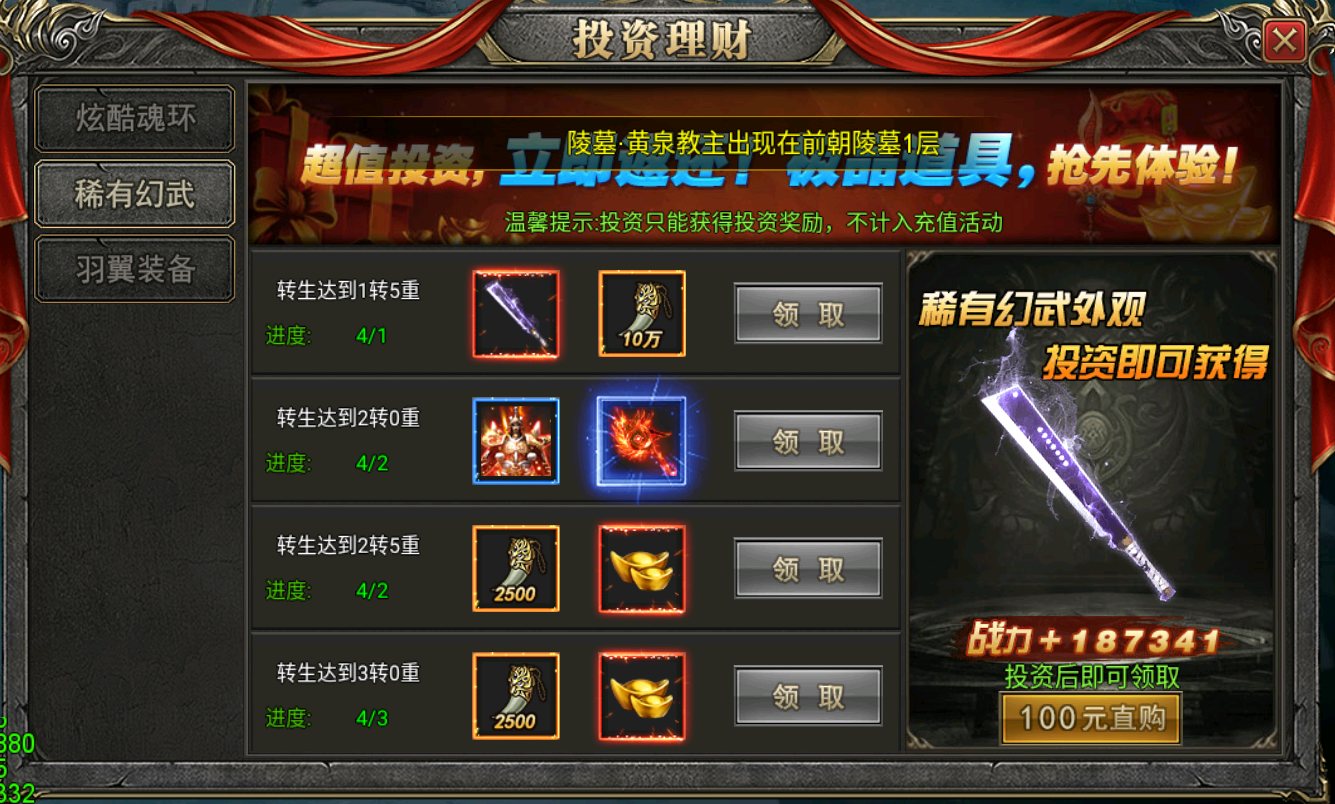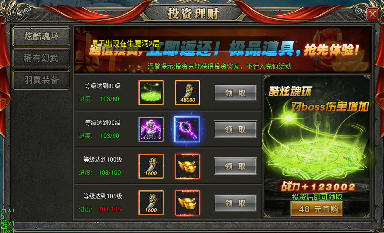 2. 投资理财:多倍摸金令返利、稀有道具返利