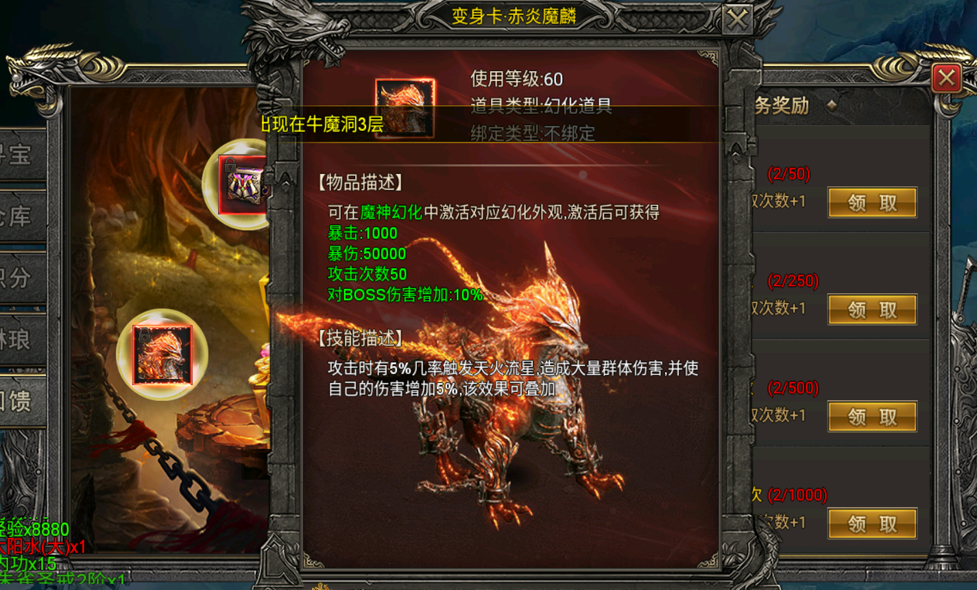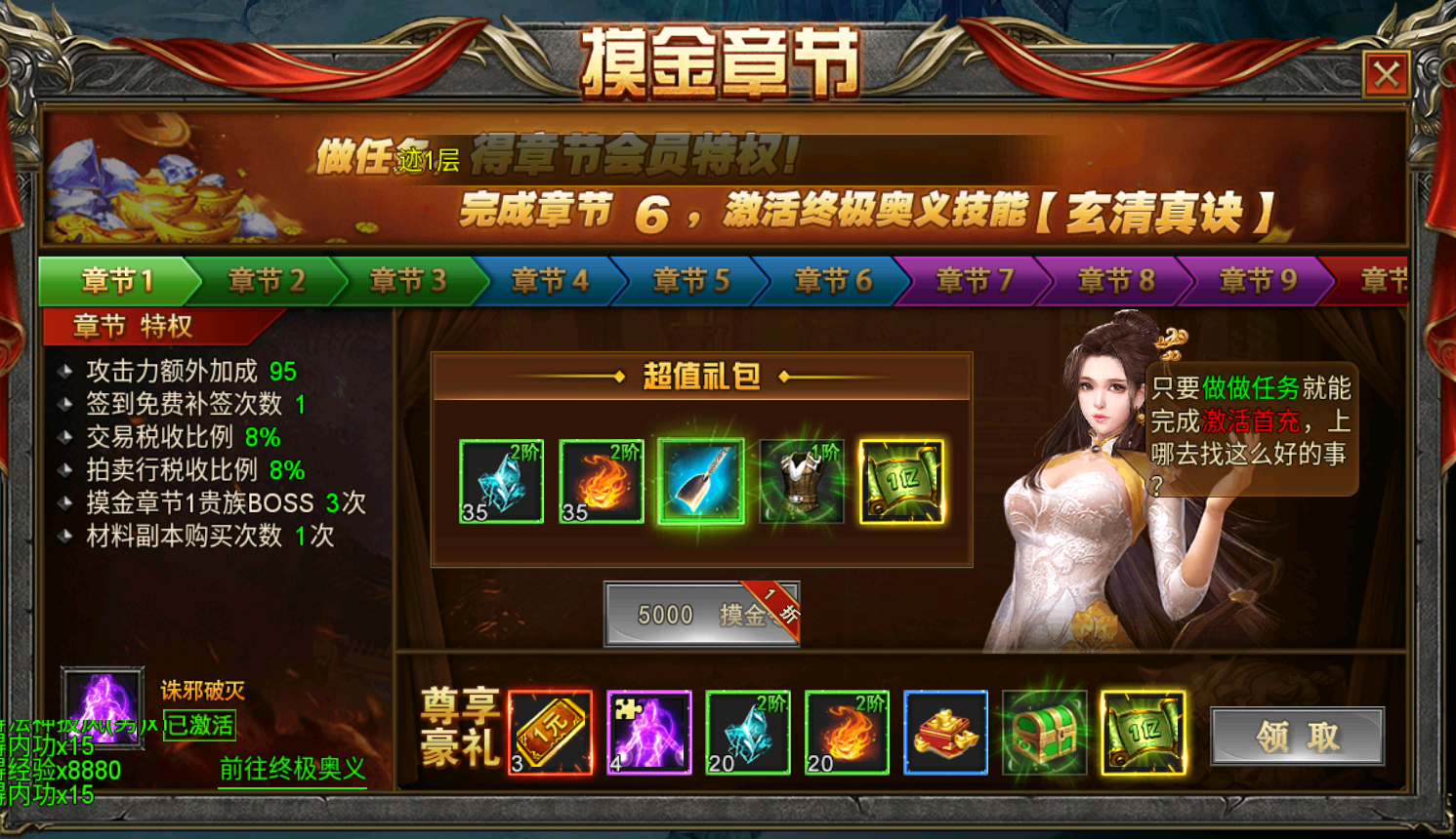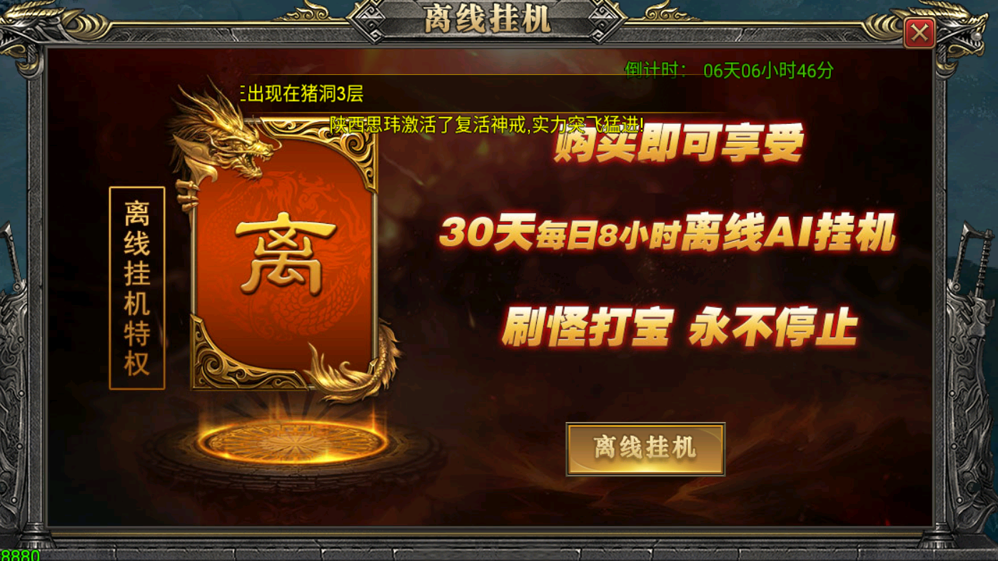 5. 离线挂机:购买后可享受每日离线8小时自动挂机