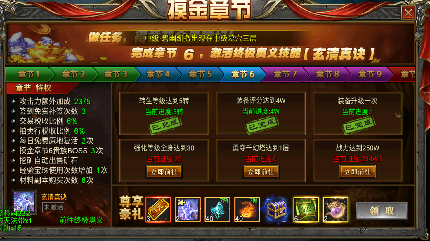 (2. 免费礼包:玩家完成章节任务,可获得充值卡、奥义碎片、稀有道具、转生材料、经验券