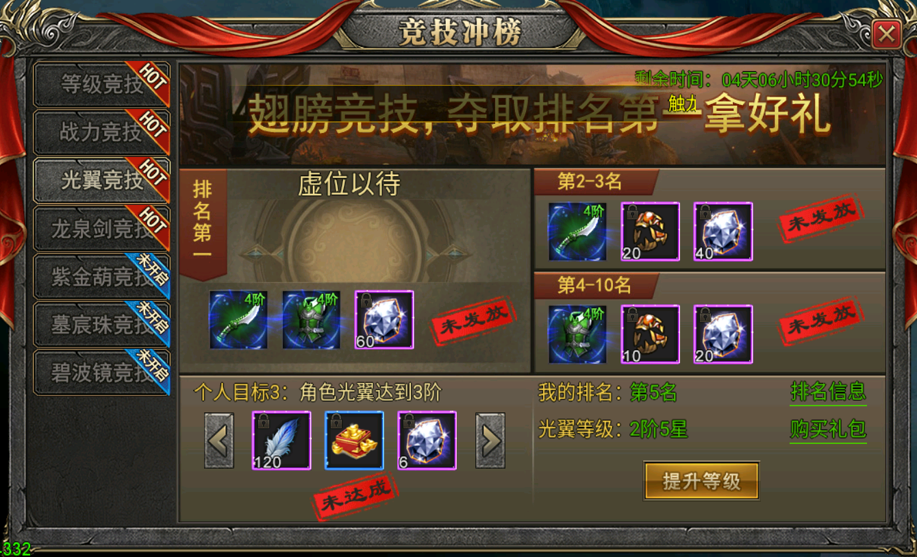 8. 竞技冲榜:等级竞技、战力竞技、光翼竞技、神兵竞技